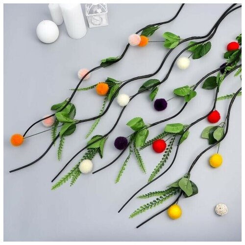 Декор тинги "Пушистые шарики и листья" 150 см (фасовка 5 шт, цена за 1шт), микс