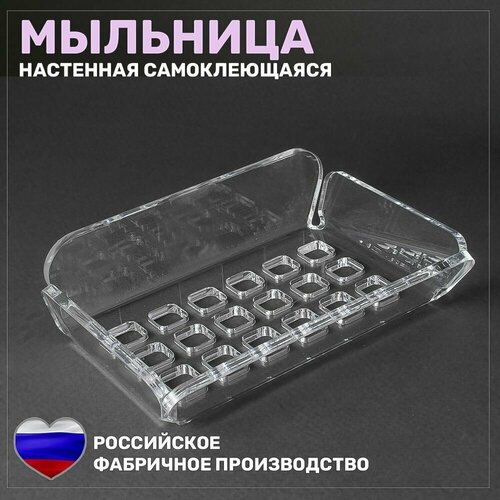Мыльница для ванной настенная самоклеющаяся вариант Home без сверления прозрачная на липучке белая из акрила