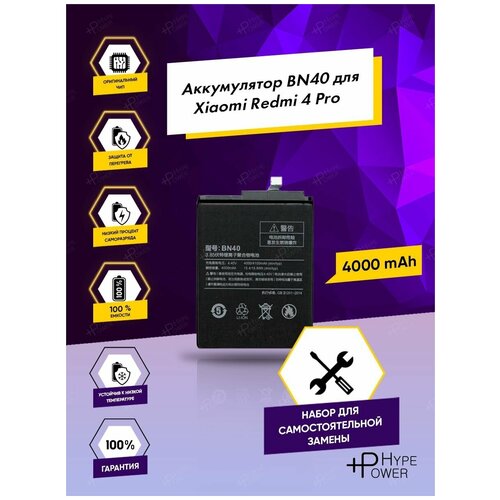 Аккумуляторная батарея для Xiaomi Redmi 4 Pro BN40 / Батарея для Редми 4 Про набор инструментов Hype Power