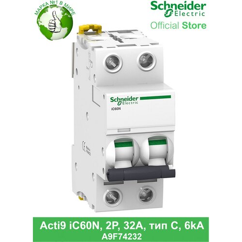 Автоматический выключатель Schneider Electric Acti9 2P 32A (C) 6кА A9F74232