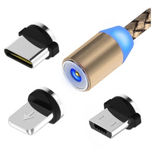 Магнитный кабель для зарядки телефона USB - micro usb type C 8 pin, 1 метр, золотой