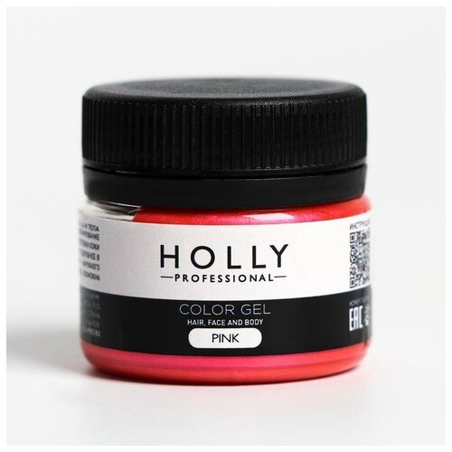 Декоративный гель для волос, лица и тела COLOR GEL Holly Professional, розовый, 20 мл
