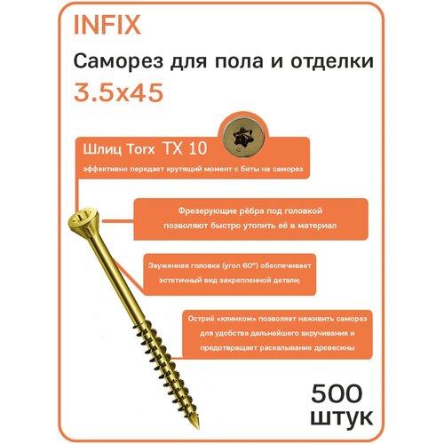 Саморез по дереву INFIX, 4.5х45 мм, с фрезой потайной, Torx20, жёлтый цинк (500 шт)
