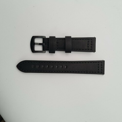 Ремешок натуральная кожа, гладкая фактура, застежка пряжка, защита от царапин, диаметр шпильки 1.5 мм., размер 20мм, черный