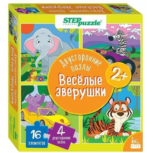 Пазл Веселые зверушки. Двусторонние пазлы, IQ step, 16 деталей / Step Puzzle