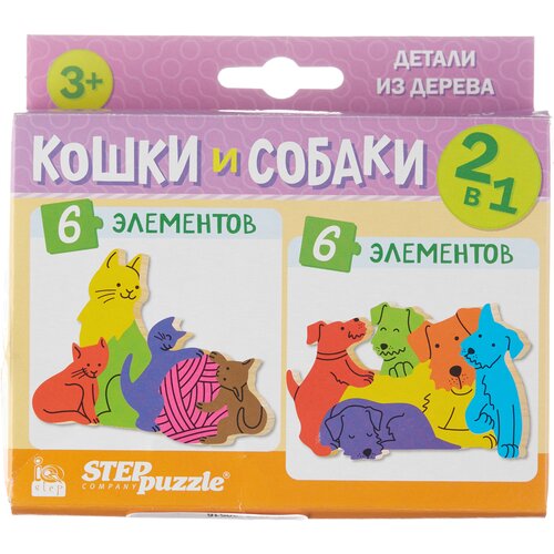 Набор пазлов Step puzzle IQ Step Кошки и собаки, 69001, 6 дет., разноцветный