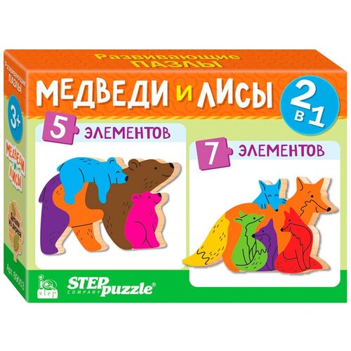 Пазл 2в1 из дерева Медведи и лисы (IQ step) / Step Puzzle