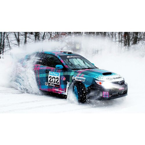 Постер на экокоже 33x50 LinxOne "Машина Занос Impreza Зима" интерьер для дома / декор на стену / дизайн