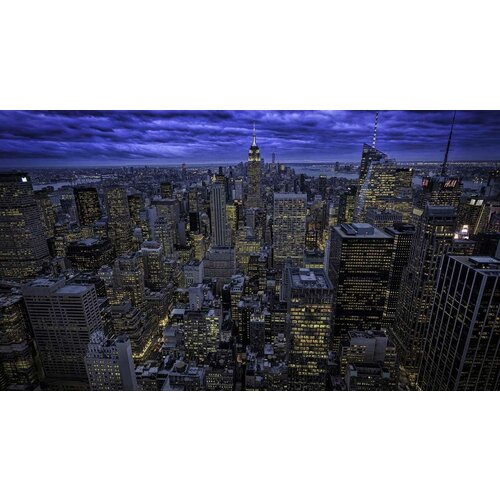 Постер на экокоже 40x50 LinxOne "In blue skyline Nyc new" интерьер для дома / декор на стену / дизайн