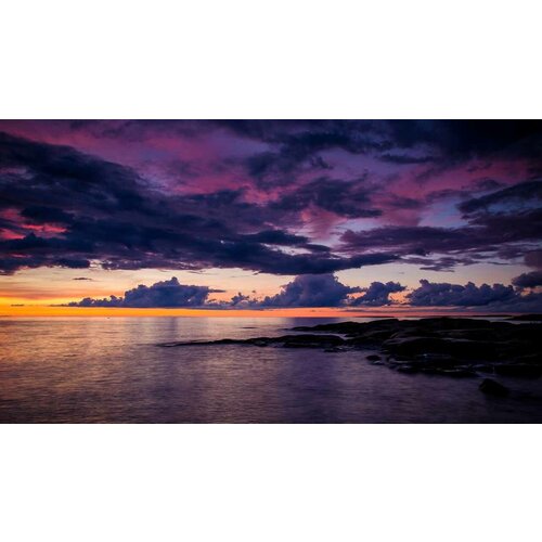 Картина на холсте 60x110 LinxOne "Sunset in Lillsand море пейзаж" интерьер для дома / декор на стену / дизайн