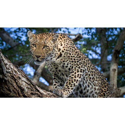 Постер на экокоже 60x90 LinxOne "Leopard in tree животное" интерьер для дома / декор на стену / дизайн