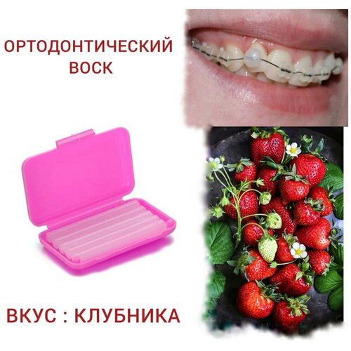 Incidental, стоматологический ортодонтический воск для брекетов и зубов, 1 уп : в полосках 5 шт с контейнером. Вкус : Strawberry-Клубника .
