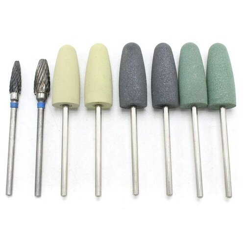 FG8 Набор 8 шт Фрезы Силиконовые и алмазные шлифовальные головки , для прямого наконечника Диаметр хвостовика - 2,35 мм.