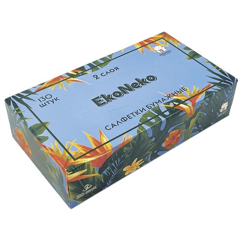 Бумажные салфетки в коробке Inshiro EkoNeko Стандарт 2 слоя, 130 шт