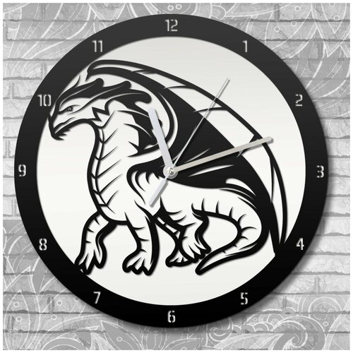Настенные часы деревянные бесшумные фэнтези дракон - 600
