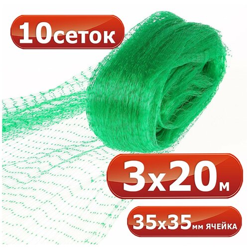 3х20 м, 10 сеток от птиц, ячейка 35 х 35 мм / Сетка для защиты урожая