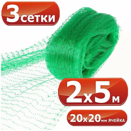 3 Сетки от птиц 2х5 м, ячейка 20 х 20 мм / Сетка для защиты урожая