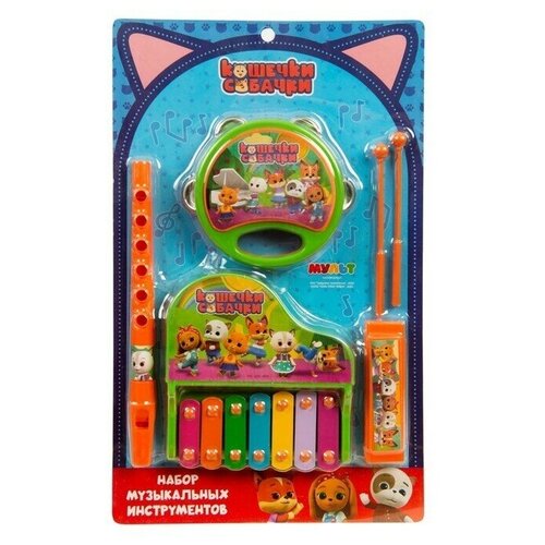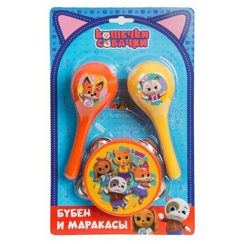 Набор инструментов бубен и маракасы "Кошечки-Собачки", 1 набор