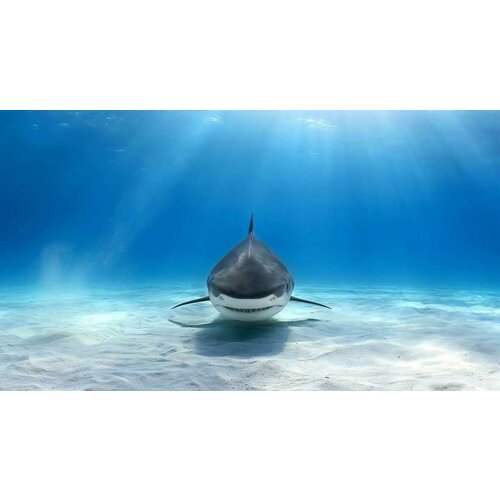 Картина на экокоже 50x70 LinxOne "Sea light beam shark" интерьер для дома / декор на стену / дизайн