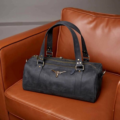 Сумка саквояж J. Audmorr JARB412B классическая, натуральная кожа, текстиль, черный
