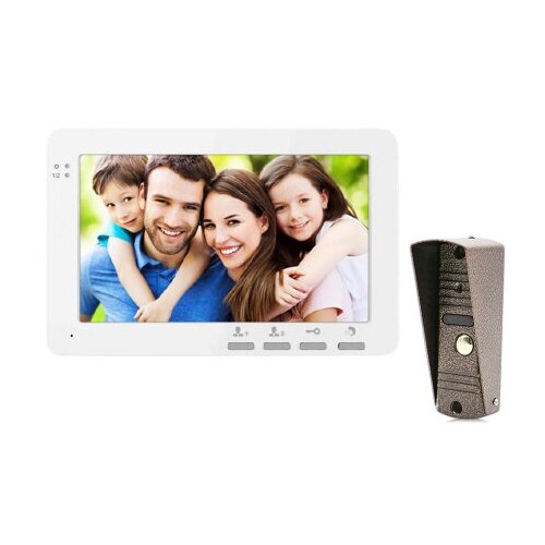 Комплект видеодомофона J2000 Комплект видеодомофона с вызывной панелью 4,3"-1 Екатерина/Адмирал PAL (белый/медь) с козырьком