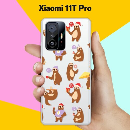 Силиконовый чехол на Xiaomi 11T Pro Ленивцы / для Сяоми 11Т Про