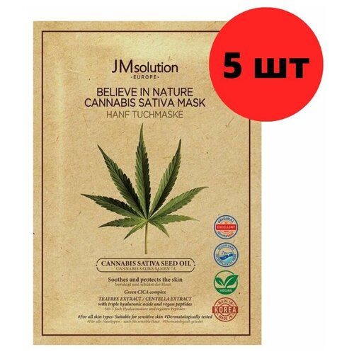 [JMSOLUTION] Тканевая маска с маслом семян конопли. Believe in Nature Cannabis Sativa Seed Oil Mask, 5 шт