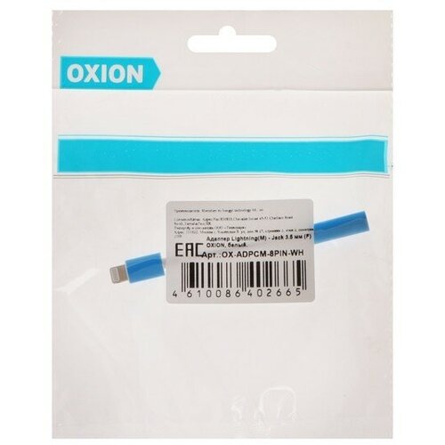 Переходник OXION, с Lightning на Jack 3.5, музыка + гарнитура, белый