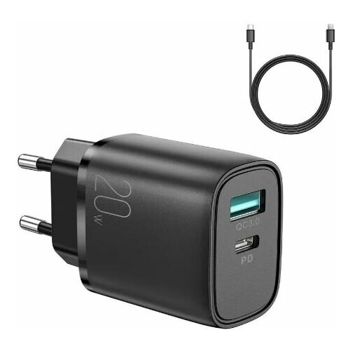 Сетевое зарядное устройство + кабель для iphone Lightning to Type-C Joyroom L-QP2011 PD 20W+QC3.0 3A черный