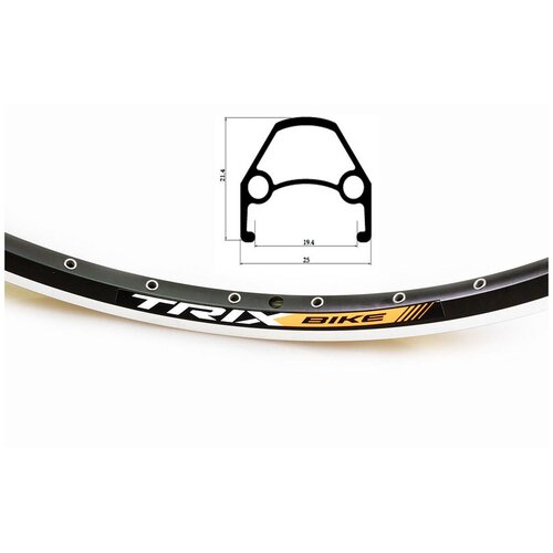 TRIX Обод 26" алюминиевый, двойной, 36H, пистонированный, фрезерованный, 559х19,4/25х21,4мм, A/V, анодированный, черный