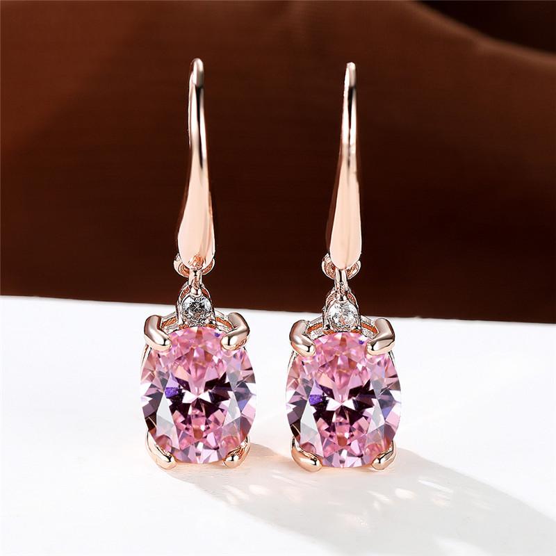 1 пара розового золота цвет овальная огранка розовый фиолетовый желтый камень капля крючок серьги обручальное кольцо висячие серьги для женщин