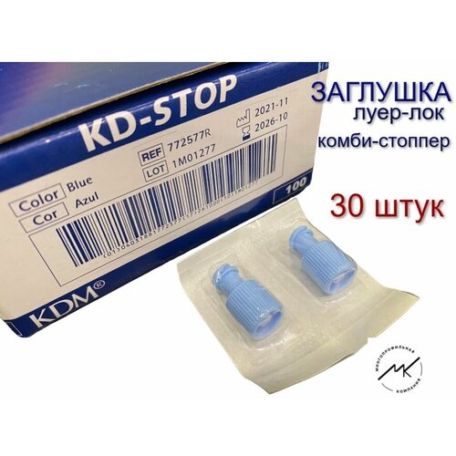 Комби-стоппер KDM заглушка Luer Lock (синий) 30шт