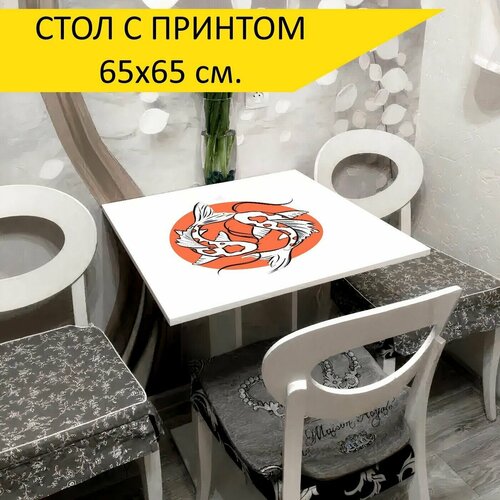 Стол "Koi, карп кои, декоративная рыба", 65x65 см. Кухонный, квадратный, с принтом.