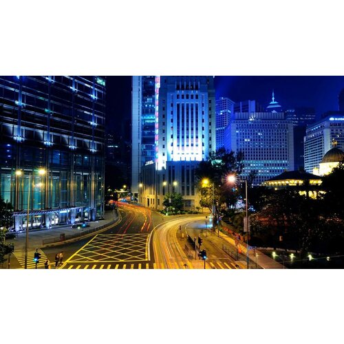 Постер на экокоже 60x110 LinxOne "Огни ночь hong kong дорога" интерьер для дома / декор на стену / дизайн