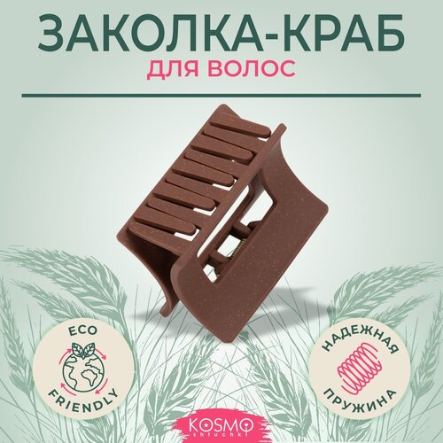 Kosmoshtuchki Заколка краб БИО Прямоугольный малый (коричневый), крабик для волос, заколка женская