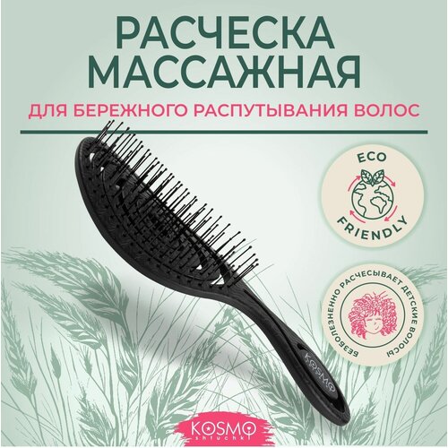 KosmoShtuchki Расческа щетка массажная для распутывания волос, продувная, для мокрых сухих и влажных волос (черная)