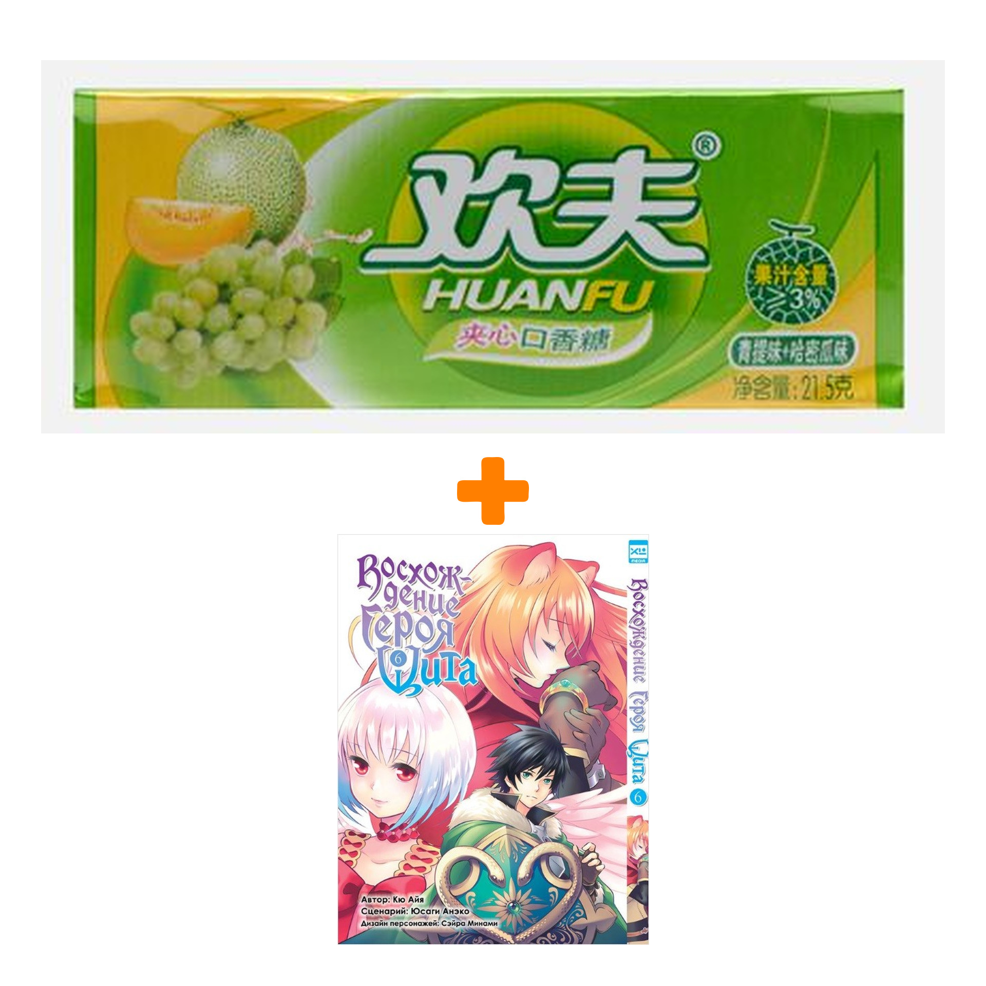 Набор Манга Восхождение Героя Щита Том 6 + Жевательная резинка Huanfu Grape & Melon Вкус винограда и дыни