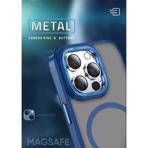 Премиальный proof чехол MagSafe для iPhone 13/14 с защитой камер, Синий, Blue, 2 камеры