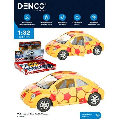 Машинка металлическая Kinsmart 1:32 "Volkswagen New Beetle Soccer" KT5028DR, инерционная / Желто-красный