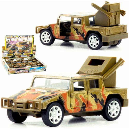 Машинка металлическая 1:32 "Военный Hummer H1 UN" 921-1, 12 см. Land Fighter, инерционная, свет, звук / Зеленый