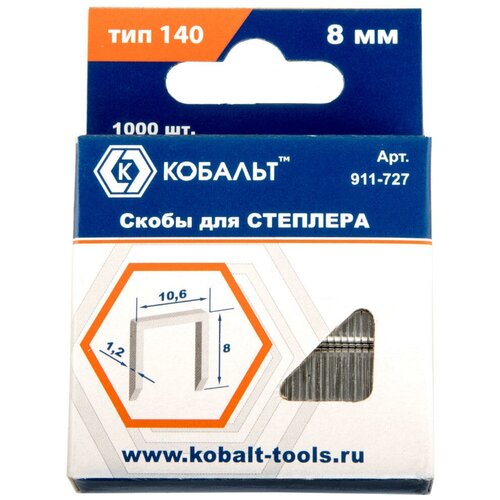 Скобы кобальт для степлера, 8 мм, тип 140, толщина 1.2 мм, ширина 10.6 мм (1000 шт) {911-727}
