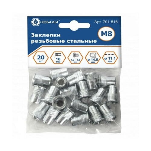 Заклепки резьбовые Кобальт стальные, M8 х 18.5 мм, пакет (20 шт) {791-516}