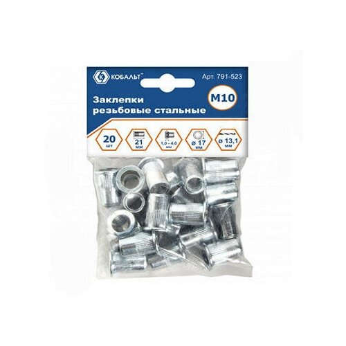 Заклепки резьбовые Кобальт стальные, M10 х 21.5 мм, пакет (20 шт) {791-523}