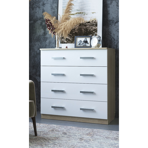 Комод, Трио Мебель, 4 выдвижных ящика, 80х44х83 см (ШхГхВ), ЛДСП, дуб сонома/белый