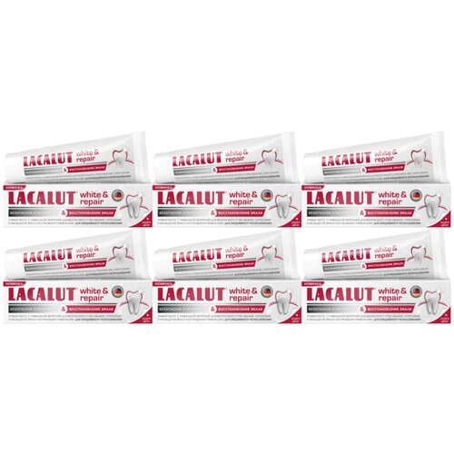 Зубная паста Lacalut white & repair отбеливающая, комплект: 6 упаковок