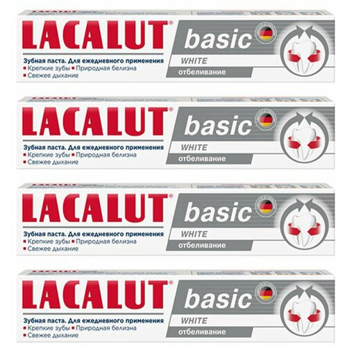 Паста Lacalut зубная Basic White отбеливание, 4 упаковки