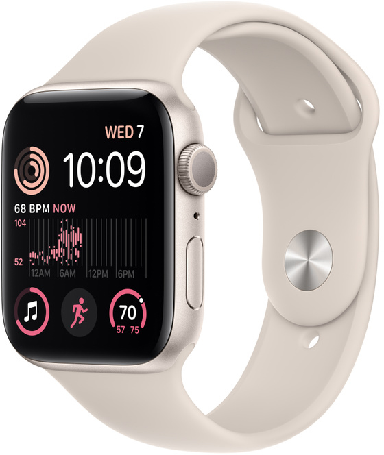 Умные часы Apple Watch SE, 44 мм сияющая звезда, с бежевым Sport ремешком