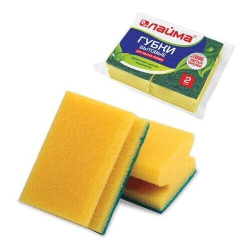 Губки бытовые MAXI, 42х96х64 мм, комплект 2 шт., поролон/абразив профильные, для посуды, LAIMA, К0015, 601557