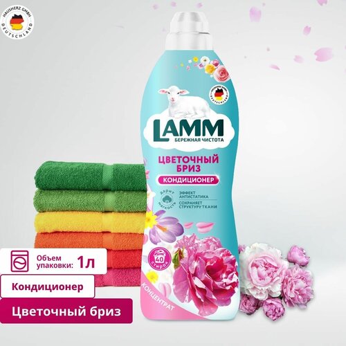 Кондиционер ополаскиватель для белья LAMM "Цветочный бриз", концентрат 1 л, 40 стирок цветочный аромат, антистатик lamm Ламм Лам