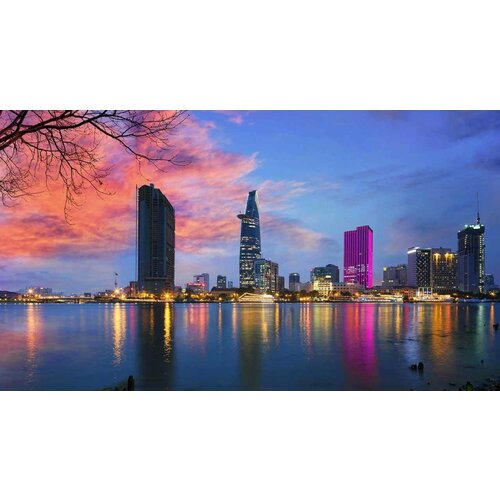 Картина на холсте 60x100 LinxOne "Ночь город andy le сайгон" интерьер для дома / декор на стену / дизайн